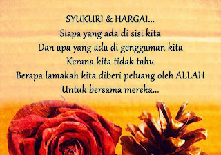 '....saudariku,sesungguhnya kesulitan itu pasti ada kemudahan,setelah titisan air mata pasti ada senyuman dan setelah malam pasti akan ada siang.Sesungguhnya awan kelabu kesedihan pasti berlaku,pekatnya malam kesusahan pasti tersingkap,segala masalah pasti teratasi dan segala bencana pasti akan berakhir dengan izin Allah....